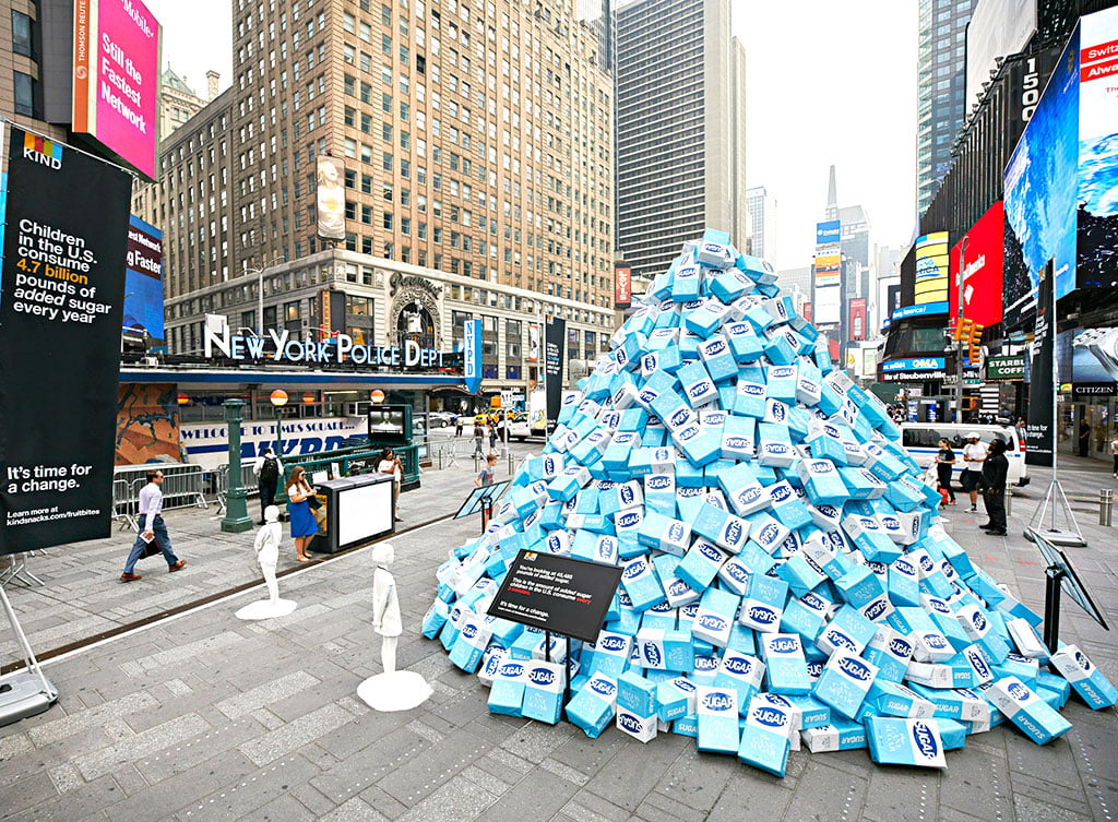 Talvez você nunca tenha pensado assim, mas toda montanha é um abismo invertido. Instalação que representa o quanto crianças comem de açúcar revela o problema que cresce sem vermos.