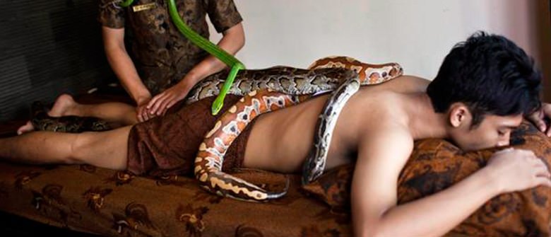 Desestresse em uma massagem com cobras