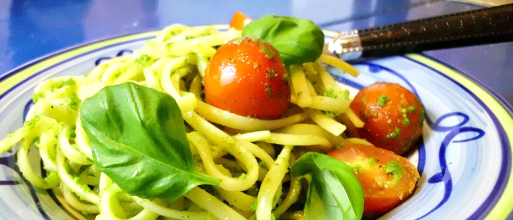 Macarrão leve com rúcula e pimenta